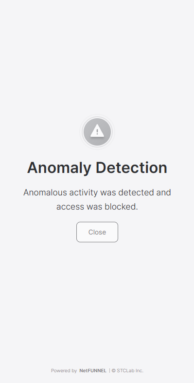 Note: The Repeated Request Block page UI cannot be customized through the NetFUNNEL console. It is a fixed interface that displays automatically when the agent receives a 302 block response.